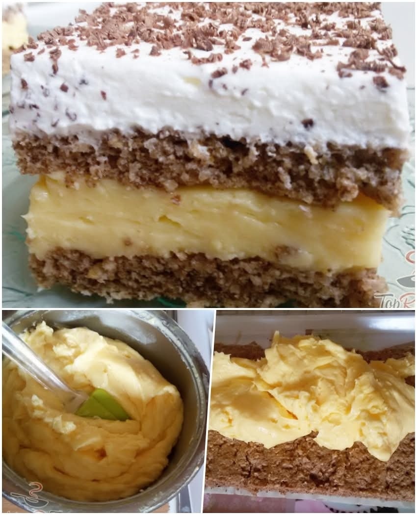 4. Pregătește crema: adaugă budinca de vanilie și zahărul în laptele fierbinte, gătește până se îngroașă, apoi adaugă gălbenușurile și untul. Amestecă până devine lucioasă și cremoasă. Lasă să se răcească.