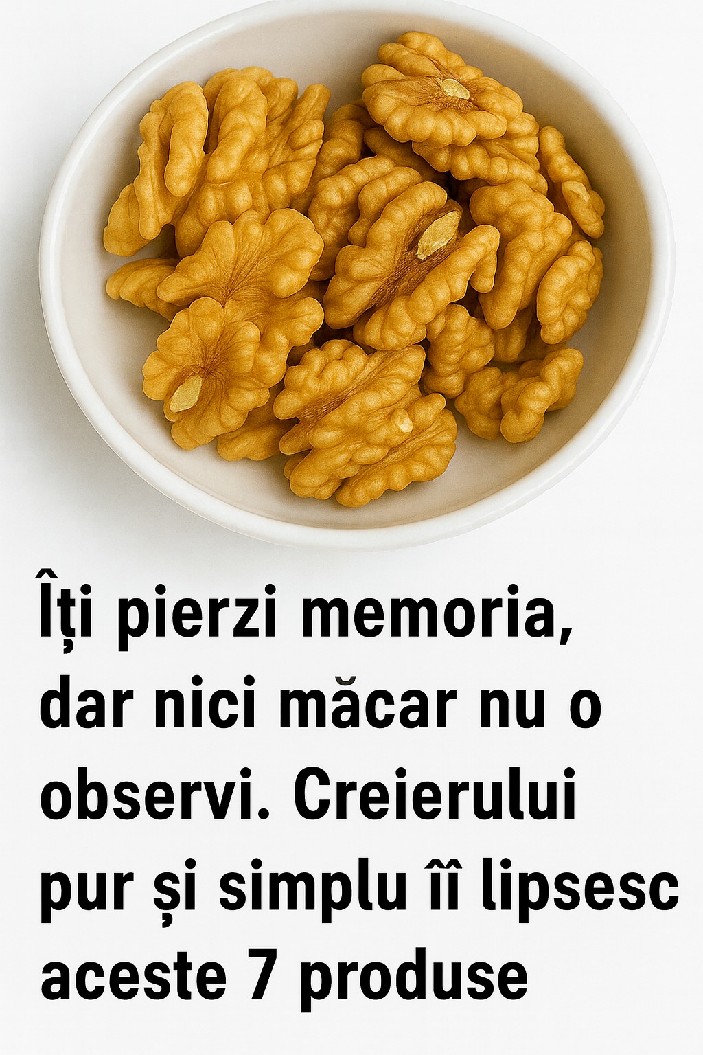 Acest articol are scop informativ și nu înlocuiește consultul medical. Dacă apar probleme serioase de memorie, pierderi bruște sau dificultăți de vorbire, mergi la medic. Dar dacă simți doar că „mintea nu mai merge ca altădată”, începe cu schimbarea alimentației. Este una dintre cele mai simple și eficiente metode de a-ți recăpăta claritatea și energia mentală.